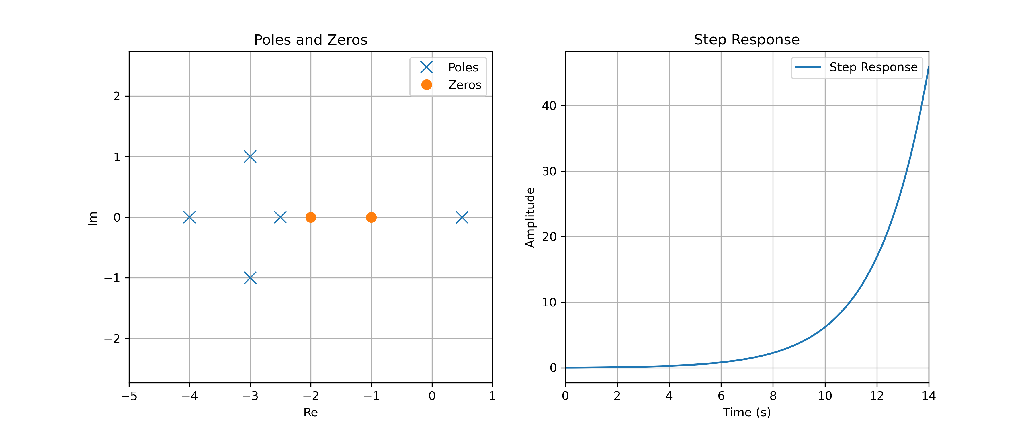 Les figures suivantes présentent les diagrammes des pôles et des zéros de deux systèmes, ainsi que leur réponse indicielle (avec