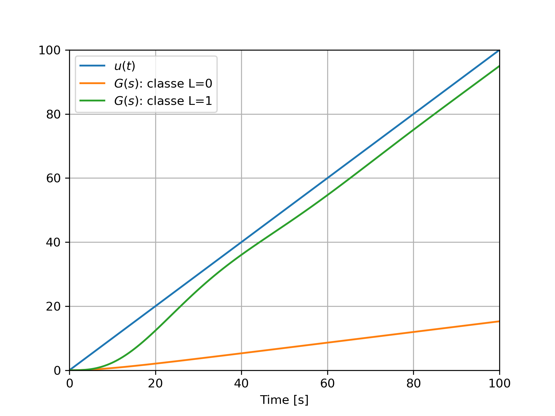 La figure ci-dessus présente la réponse à une rampe en boucle fermée de deux systèmes : le premier système possède une boucle ouverte
